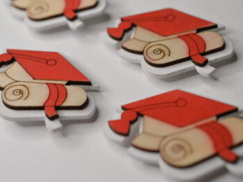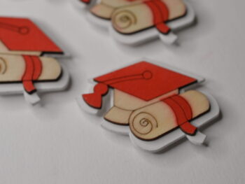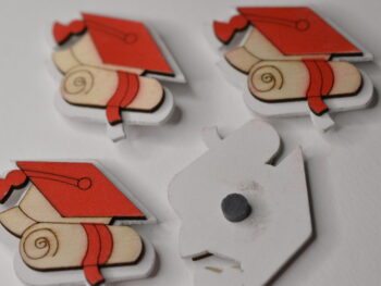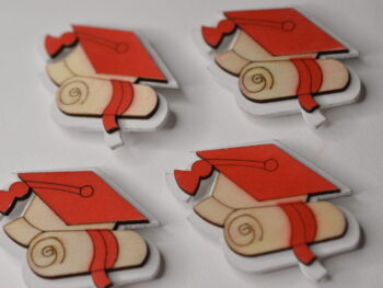 12 calamite in legno naturale e cappello rosso per laurea cm 3,5×3,5