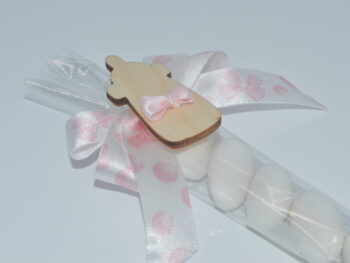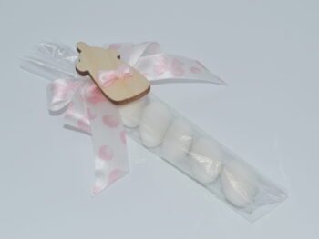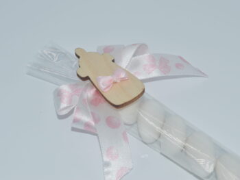 Biberon in legno naturale applicato e decorato diametro cm 5