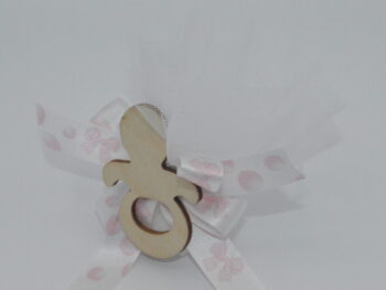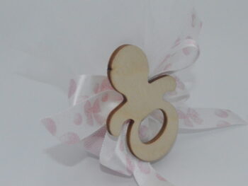 Ciuccio in legno applicato e decorato diametro cm 6,5