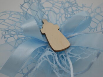 Biberon in legno naturale applicato e decorato diametro cm 5