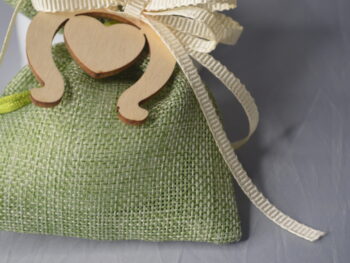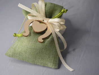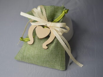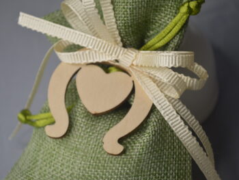 Ferro di cavallo e cuore in legno naturale applicato e decorato diametro cm 5