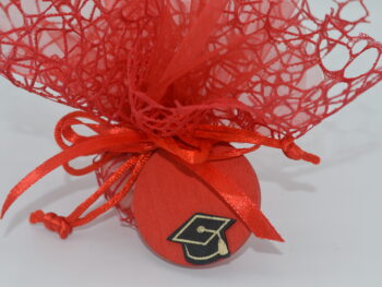Oggetto in legno con cappello laurea applicato e decorato diametro cm 4,5