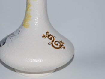 Bottiglia collo stretto in ceramica di Castelli bocciardata, dipinta a mano.