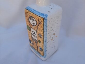 Bottiglia in ceramica di castelli bocciardata raffigurante il terzo cielo di Castelli.