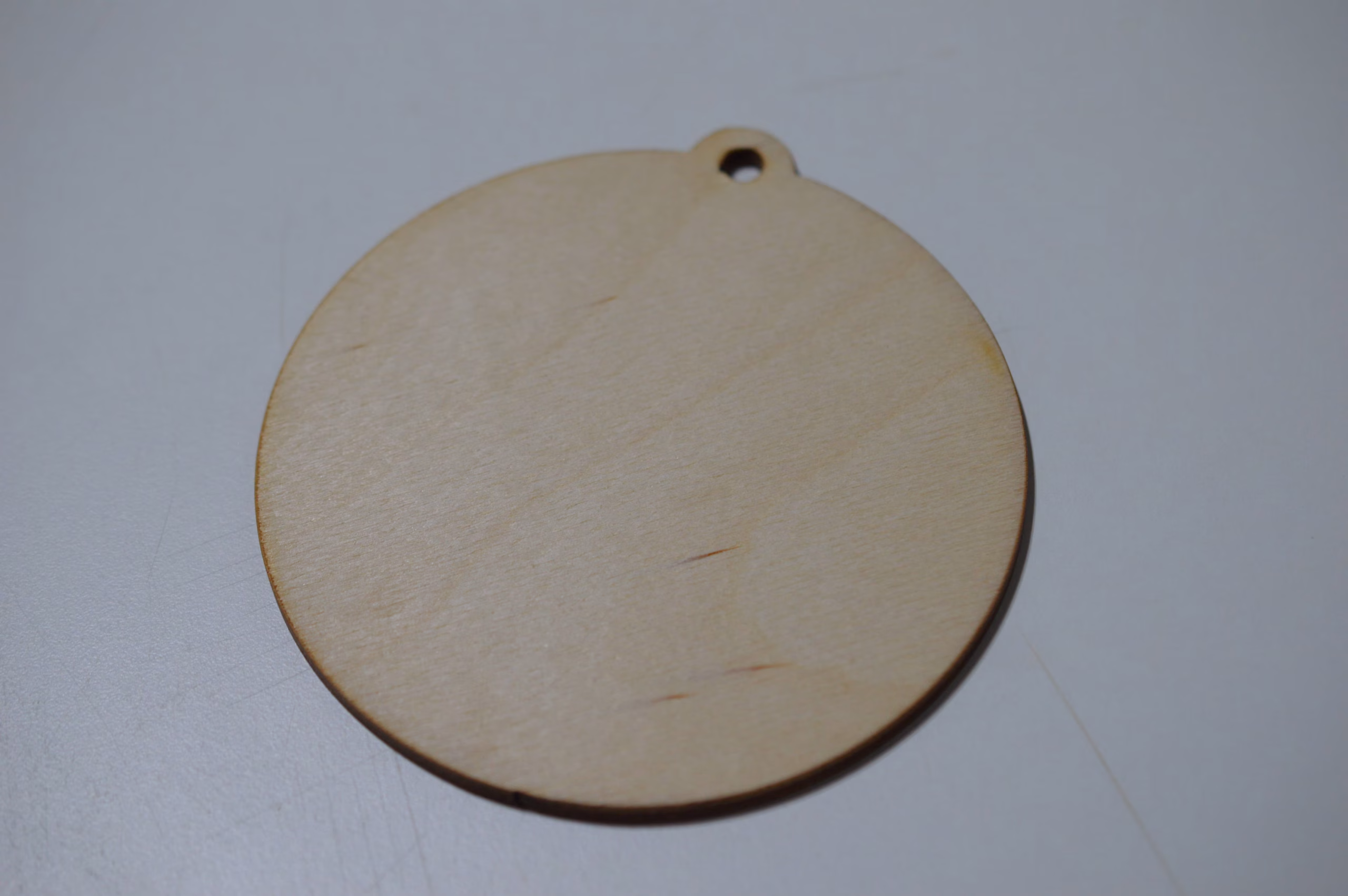 Ciondolo forma tonda da appendere in legno.