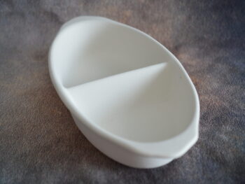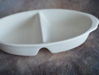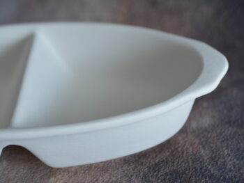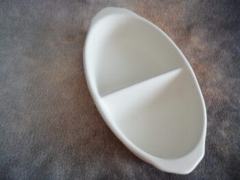 Ciotola ovale a due posti, in terracotta bianca da decorare.
