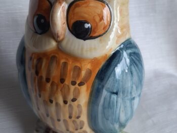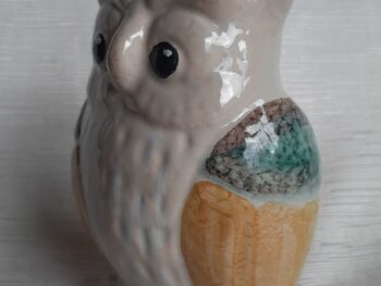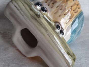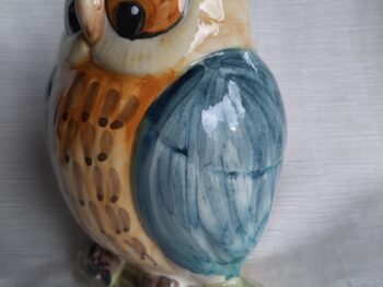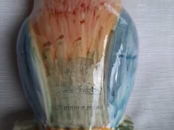 Gufo grande in ceramica di castelli, realizzato e dipinto completamente a mano da maestri ceramisti castellani.