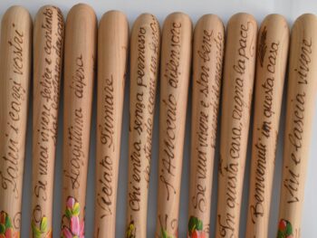 Prodotto realizzato e dipinto con scritte artigianalmente.