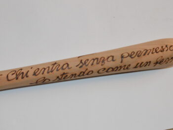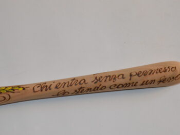 Prodotto realizzato e dipinto con scritte artigianalmente.