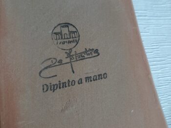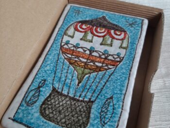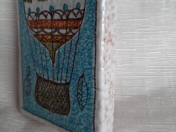 Mattone in ceramica di castelli bocciardata raffigurante il terzo cielo di Castelli. Mongolfiera. cm 8×13