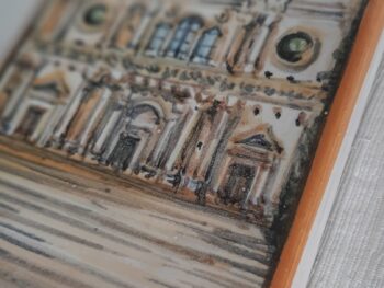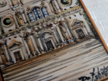 Mattone in ceramica di castelli dipinto a mano con veduta di San Bernardino (L’Aquila)
