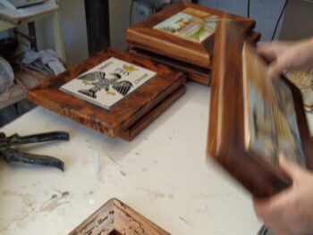Mattonella dipinta a mano in ceramica di Castelli artigianale con cornice