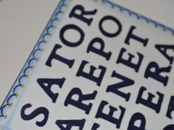 La mattonella in ceramica di Castelli cm 20×20 dipinta a mano sator è un oggetto di arte e tradizione, che richiama la storia e la cultura di una delle più antiche e rinomate ceramiche d’Italia. La mattonella è decorata con il quadrato magico del sator, un antico enigma che si compone di cinque parole latine disposte in modo da formare un palindromo, cioè una frase che si legge allo stesso modo da destra a sinistra e da alto a basso. Le parole sono: SATOR, AREPO, TENET, OPERA, ROTAS. Il significato di questo misterioso messaggio è ancora oggetto di dibattito tra gli studiosi, ma alcuni lo interpretano come una formula magica o una preghiera cristiana. La mattonella è realizzata in ceramica bianca smaltata e dipinta a mano con colori vivaci e brillanti, che mettono in risalto i dettagli del disegno.