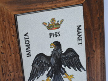 Mattonella dipinta a mano in ceramica di Castelli artigianale con cornice