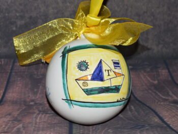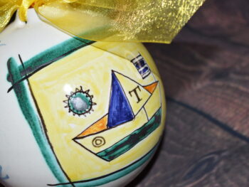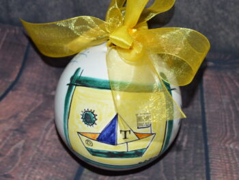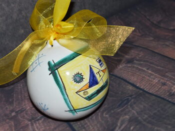 Questa palla ceramica di castelli è un prodotto artigianale realizzato con cura e maestria. La superficie della palla è dipinta a mano con motivi floreali e geometrici, tipici della tradizione ceramica di Castelli, un paese dell’Abruzzo famoso per la sua produzione artistica. La palla ha un foro per poterla appendere con un nastro o una corda. Questa palla ceramica è ideale per regali natalizi, bomboniere, decorazione della casa o dell’albero di Natale. È un oggetto unico e originale, che porta con sé il fascino e la bellezza della cultura abruzzese.