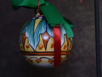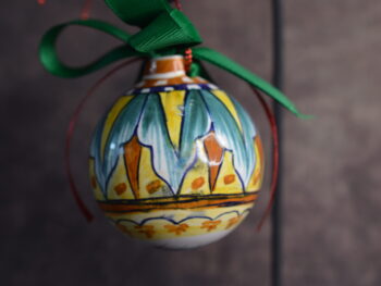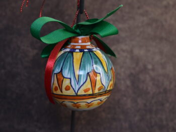 Questa palla ceramica di castelli è un prodotto artigianale realizzato con cura e maestria. La superficie della palla è dipinta a mano con motivi floreali e geometrici, tipici della tradizione ceramica di Castelli, un paese dell’Abruzzo famoso per la sua produzione artistica. La palla ha un foro per poterla appendere con un nastro o una corda. Questa palla ceramica è ideale per regali natalizi, bomboniere, decorazione della casa o dell’albero di Natale. È un oggetto unico e originale, che porta con sé il fascino e la bellezza della cultura abruzzese.