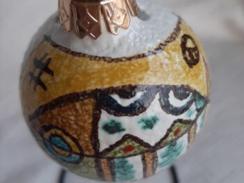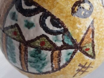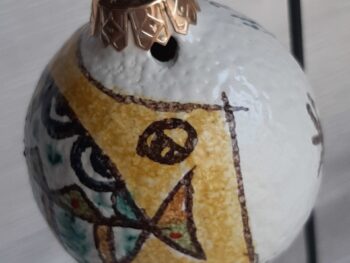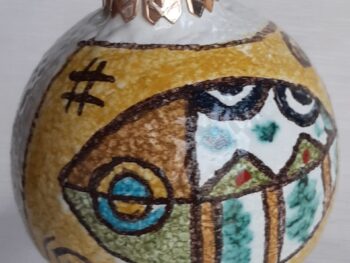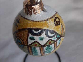 Palla in ceramica di castelli bocciardata realizzata e dipinta a mano da maestri ceramisti castellani, raffigurante il terzo cielo di Castelli. Pesce. Ideale per la realizzazione di bomboniere personalizzate