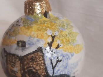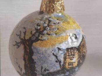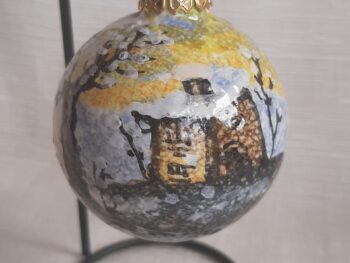 Palla in ceramica di castelli bocciardata dipinta a mano da maestri ceramisti Castellani.
