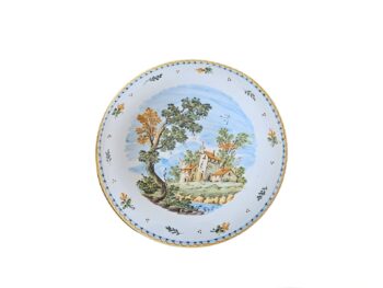 Piatto in ceramica di castelli dipinto a mano da maestri ceramisti Castellani.