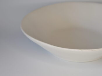 Piatto fondo in terracotta bianca da decorare ondulato.