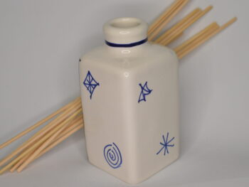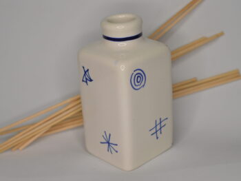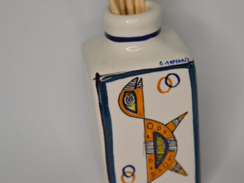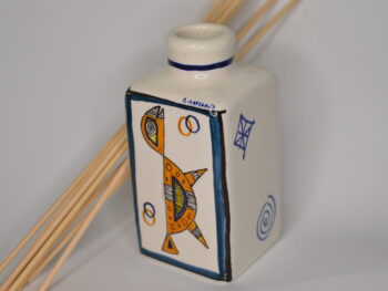 Profumatore in ceramica di Castelli, un oggetto di artigianato tipico della regione Abruzzo, in particolare della città di Castelli, famosa per la sua tradizione ceramica che risale al XVI secolo. Il profumatore è realizzato e dipinto completamente a mano, con motivi floreali e geometrici che richiamano lo stile rinascimentale e barocco delle maioliche castellane. Il profumatore può essere riempito con essenze profumate e posizionato in ambienti domestici o lavorativi per diffondere una gradevole fragranza. Il profumatore in ceramica di Castelli è un articolo di qualità e di valore, che testimonia la maestria e la creatività degli artigiani abruzzesi. Dimensioni cm 11x5x5