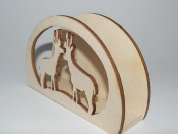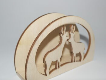 Il portatovagliolo in legno è realizzato in faggio di alta qualità, con una sagoma semicerchio ed una incisione laser a forma di cervo. Questo prodotto artigianale è interamente made in Italy e le sue misure sono di 15 cm di lunghezza, 5 cm di larghezza e 10 cm di altezza.