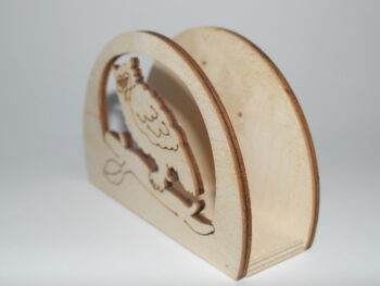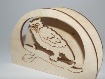 Il portatovagliolo in legno è realizzato in faggio di alta qualità, con una sagoma semicerchio ed una incisione laser a forma di gufo. Questo prodotto artigianale è interamente made in Italy e le sue misure sono di 15 cm di lunghezza, 5 cm di larghezza e 10 cm di altezza.