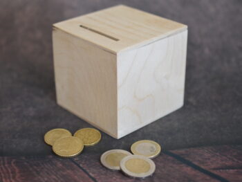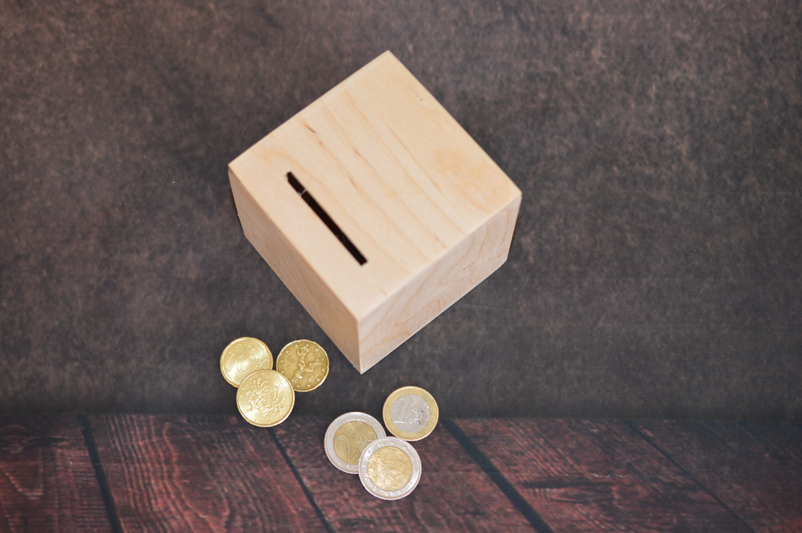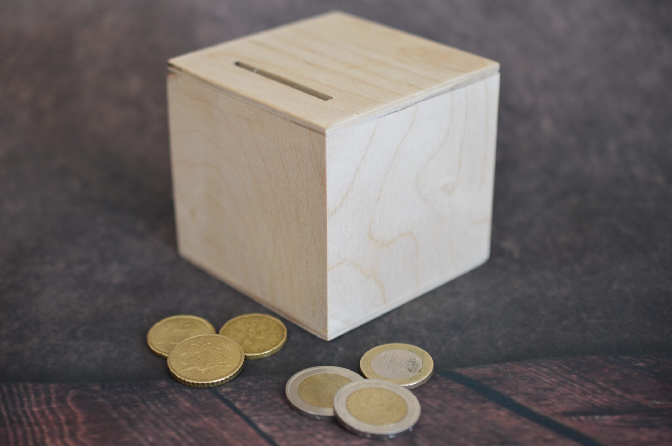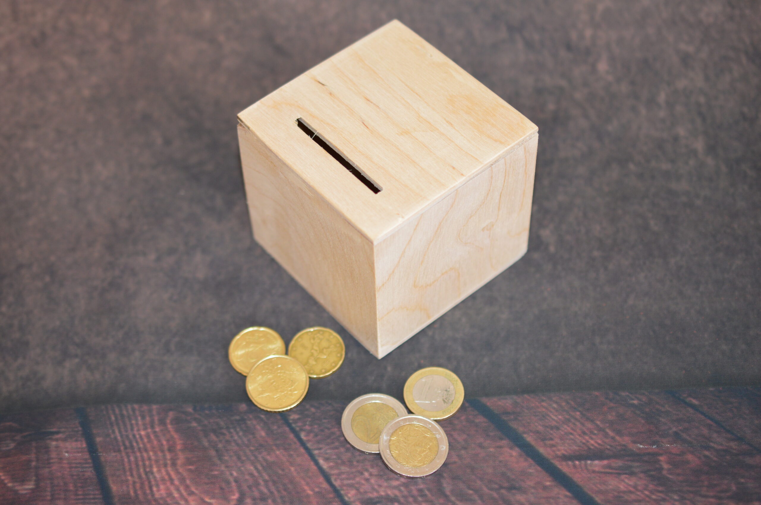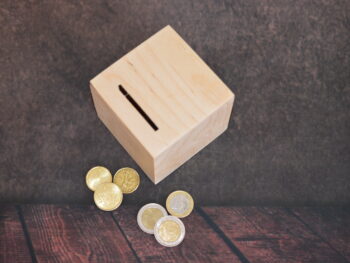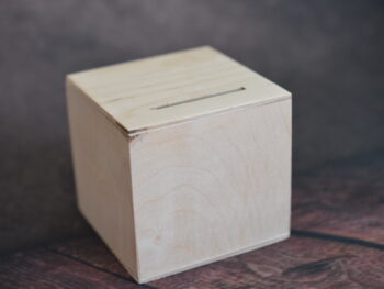 Salvadanaio in legno cm 10x10x10