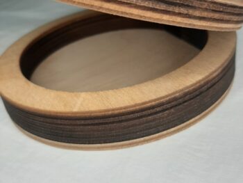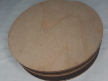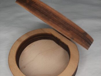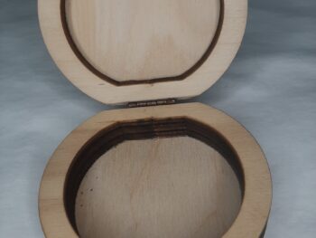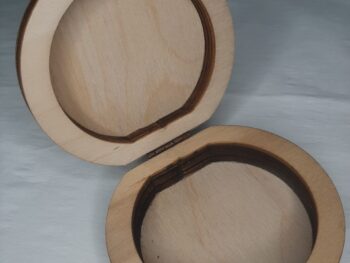 Scatola in legno portaoggetti, di forma rotonda.
