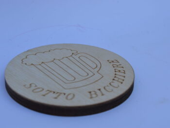 Sottobicchiere in legno, inciso e lavorato a mano.