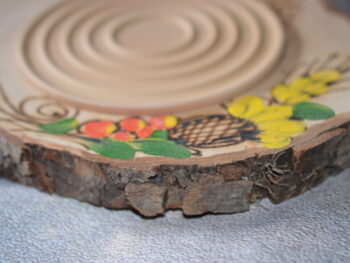 Il sottopentola tondo in legno, corteccia e terracotta è un oggetto artigianale realizzato a mano da abili artigiani abruzzesi. Misura circa 20 cm ed è ideale per arredare cucine, fare bomboniere o come regalo. La sua superficie è decorata con cura, e la combinazione di legno e terracotta gli conferisce un aspetto rustico e accogliente. È un pezzo unico che aggiungerà un tocco di autenticità e calore a qualsiasi ambiente