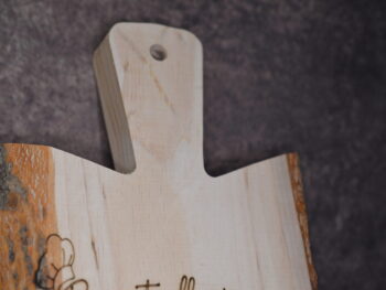 Aggiungi un tocco di eleganza rustica alla tua cucina con questo splendido tagliere in legno artigianale. Con dimensioni di 31 cm di lunghezza, 15 cm di larghezza e 2,3 cm di spessore, questo tagliere è perfetto per preparare, servire e presentare i tuoi piatti preferiti.
