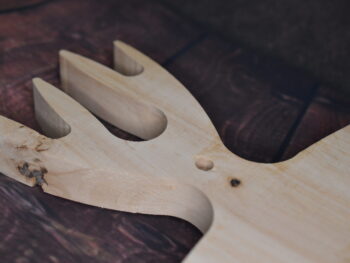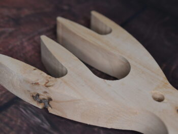 Design: Forma unica con un’estremità che presenta tre punte simili a una forchetta e un foro per appenderlo