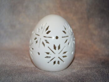 Un uovo in ceramica intagliato di circa 10 cm è un oggetto decorativo elegante e suggestivo. I motivi intagliati, come fiocchi di neve o altre forme geometriche, creano un design raffinato. La luce posta all’interno dell’uovo illumina delicatamente gli intagli, proiettando ombre e riflessi che conferiscono un’atmosfera accogliente e magica all’ambiente circostante. Questo tipo di decorazione è perfetto per creare un punto focale in spazi interni o per aggiungere un tocco di fascino, specialmente in occasioni speciali o durante le festività.