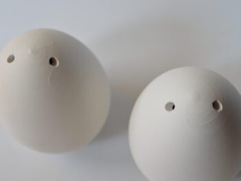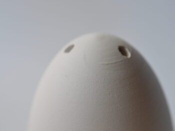 La superficie dell’uovo è liscia e piacevole al tatto, mentre la sua tonalità biancastra dona un senso di purezza e semplicità. Lungo la sua superficie sono presenti una serie di buchi, che possono essere utilizzati per due scopi principali.