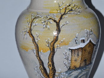 Vaso portafiori in ceramica di Castelli, dipinto a mano cm 31