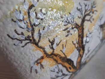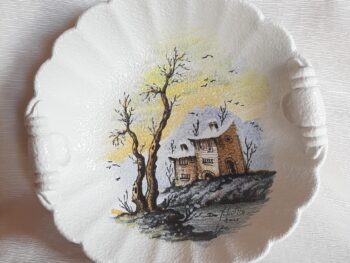 Portagioie in ceramica di castelli bocciardata raffigurante albero della vita cm 12x5